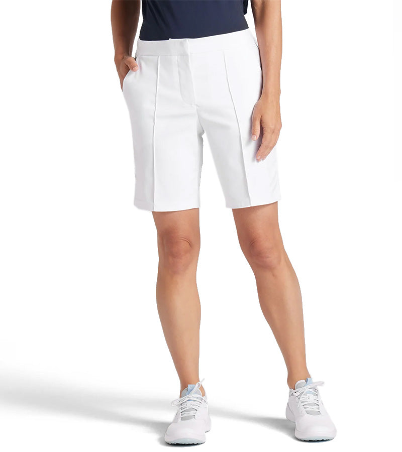 Designed for all-day comfort and clean course style, the Puma Women’s Costa 8.5" Golf Shorts blend function with a flattering silhouette. These pull-on shorts feature a sleek, tailored look and a mid-rise fit that hugs without restricting movement. The four-way stretch fabric offers a lightweight, breathable feel, making it a favorite for long days on the links or weekend errands. The wide elastic waistband ensures a smooth fit, and the front hand pockets provide practical space for tees and accessories, while welt back pockets maintain a polished finish.